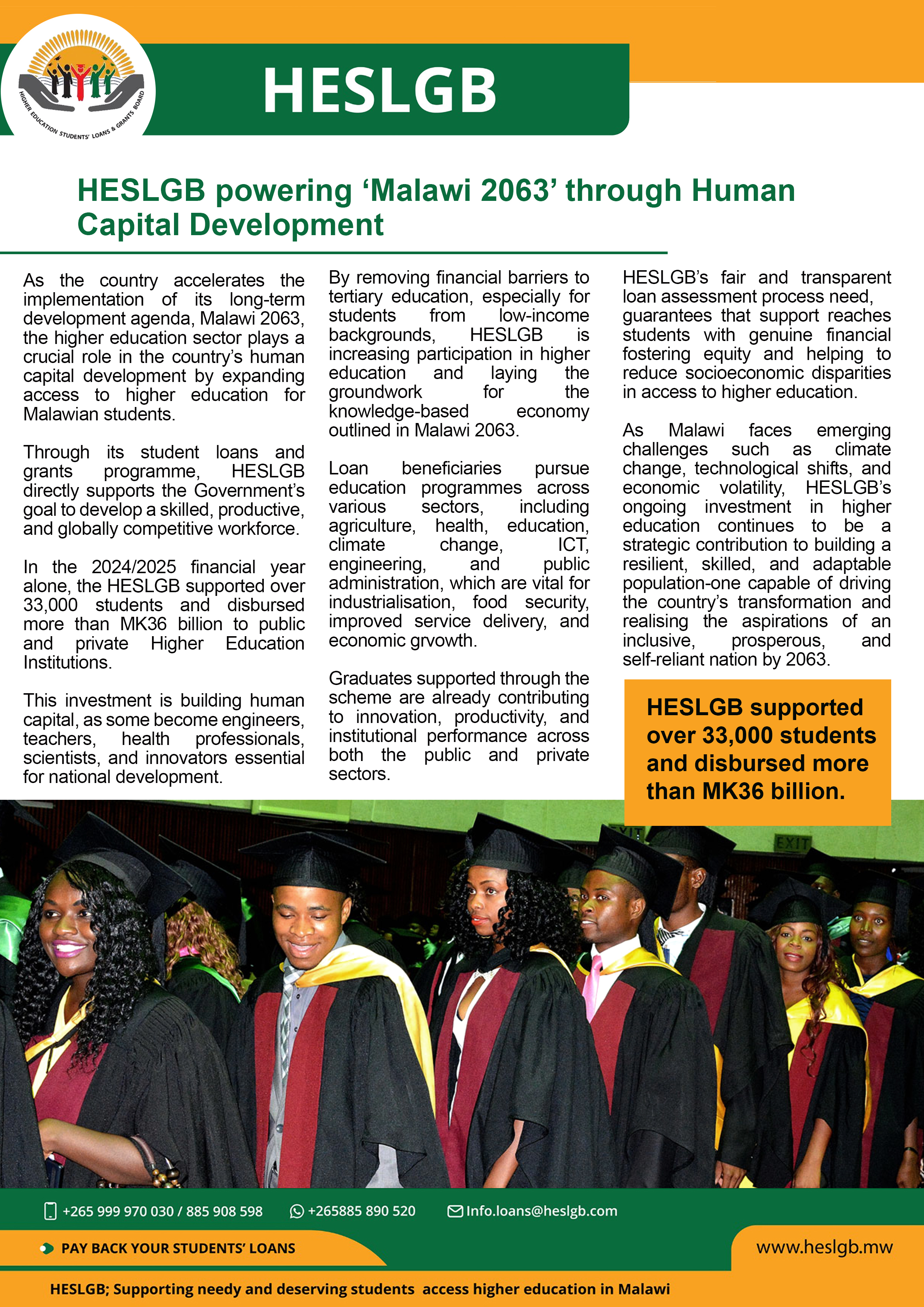 To Sustainably provide Accessible and Affordable Loans and Grants to Deserving Students Pursuing Higher Education in Malawi.