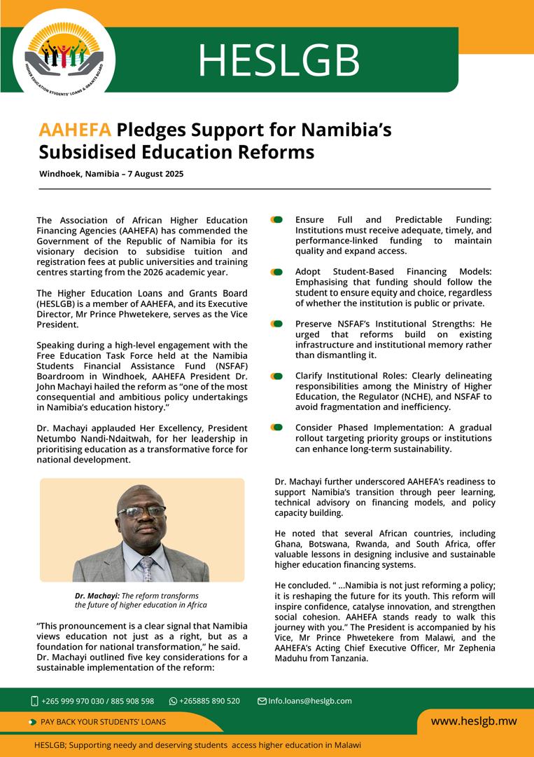 AAHEFA pledges support for Namibia subsidised education reforms