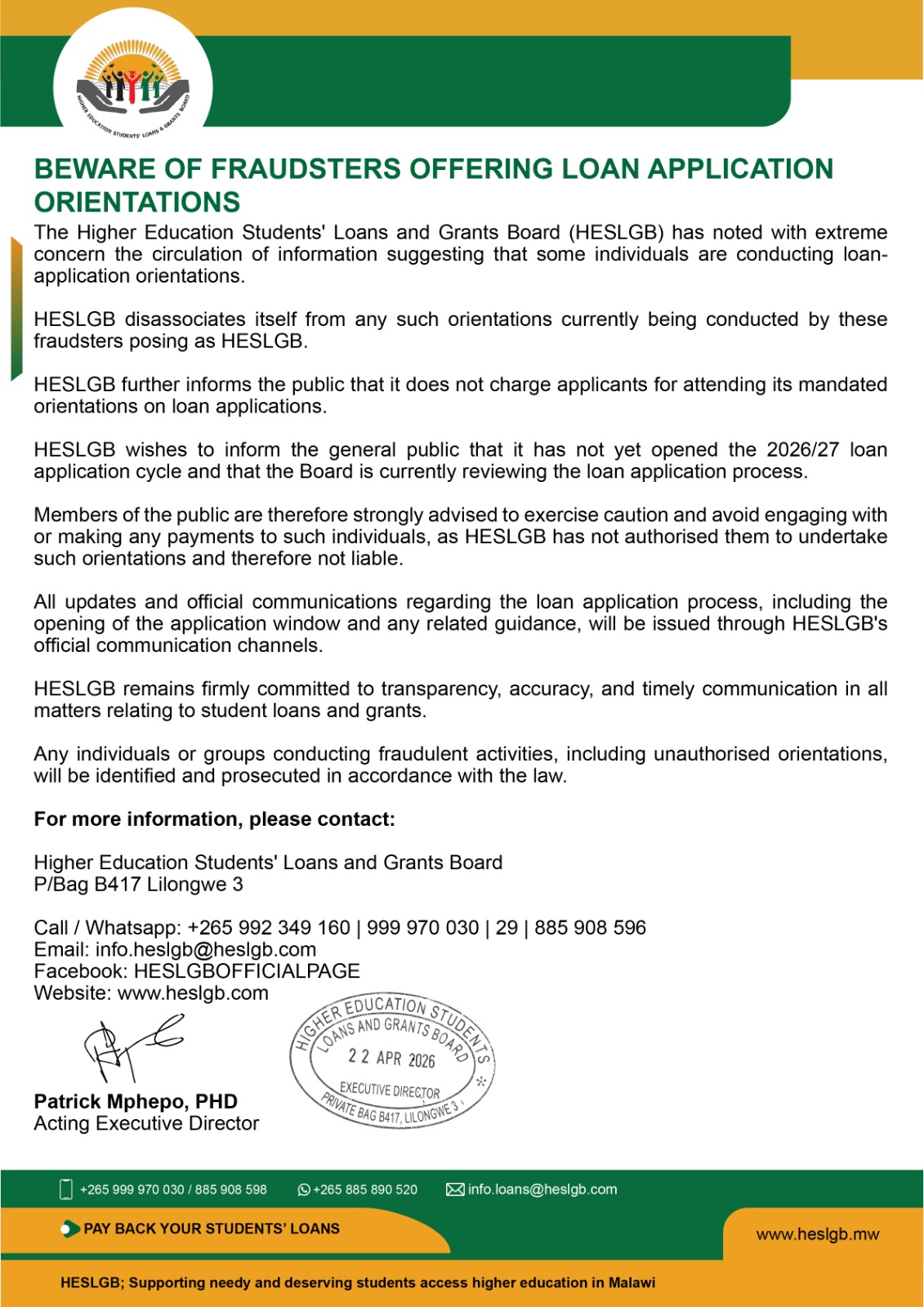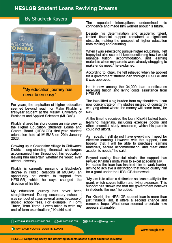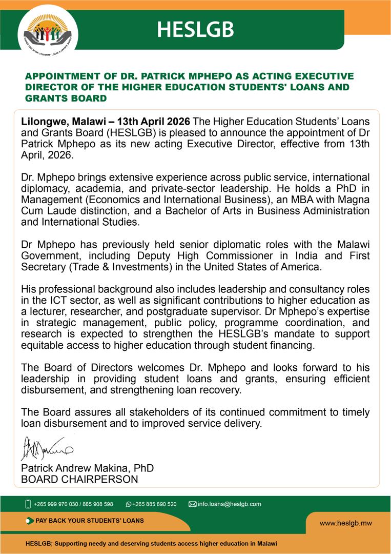 To Sustainably provide Accessible and Affordable Loans and Grants to Deserving Students Pursuing Higher Education in Malawi.
